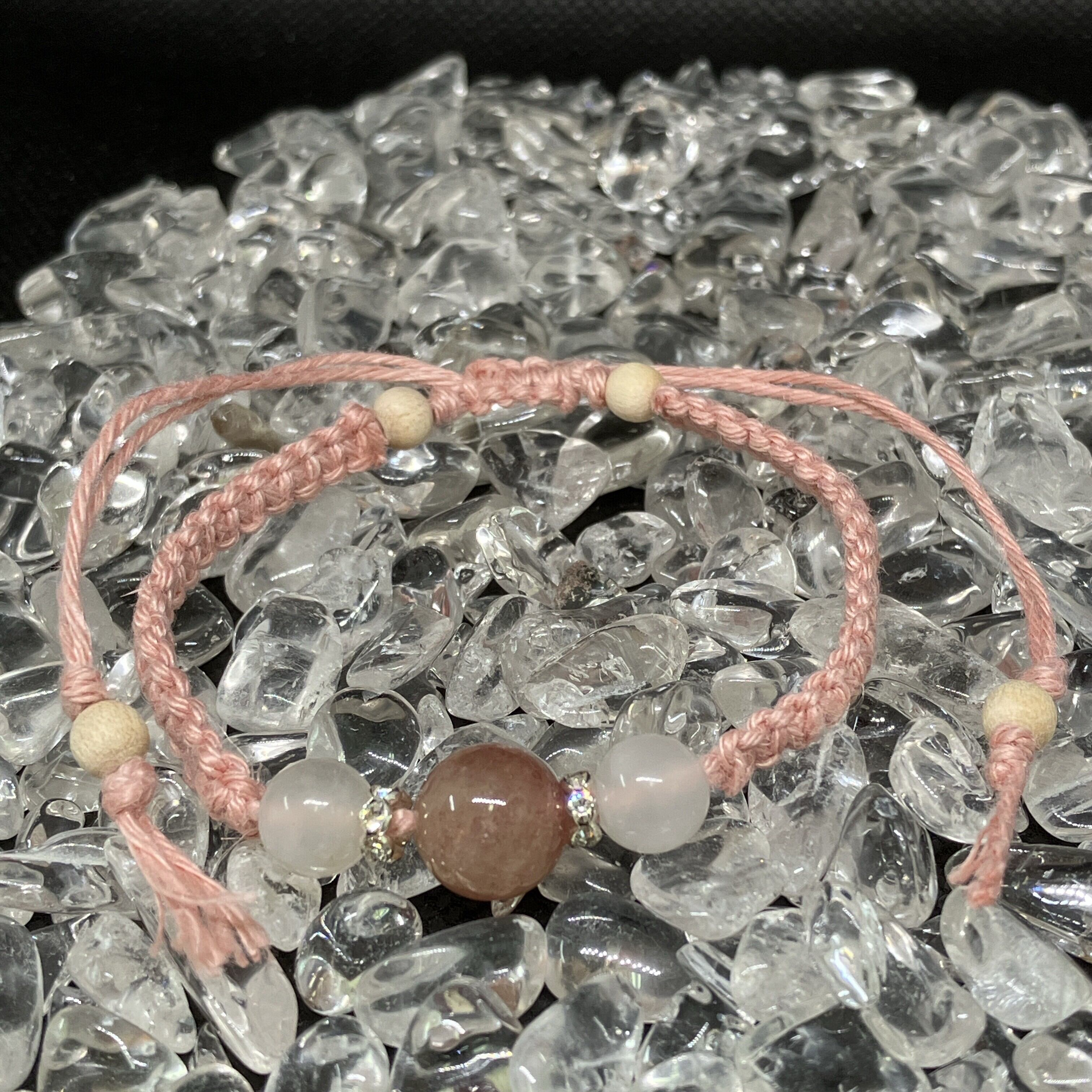 ストロベリークォーツは、愛情や感情の癒し、自己受容を促すピンク色のクォーツです。心の傷を癒し、優しさや思いやりを高める効果が期待されます。