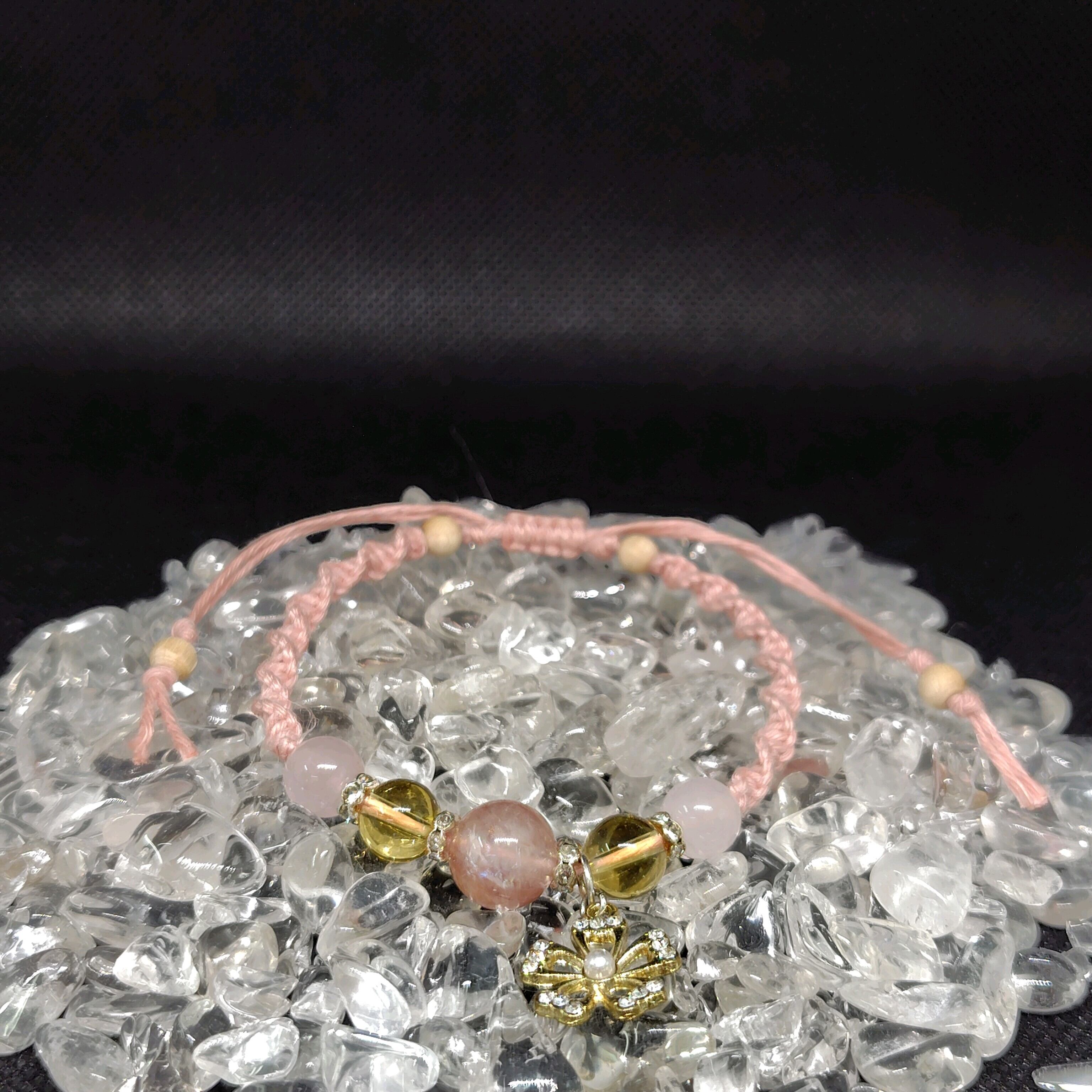 ・カラー:ライモナイトインクォーツ<透明+オレンジ> シトリン<黄色透明> 翡翠<薄ピンク> ヘンプコード<ピンク>
