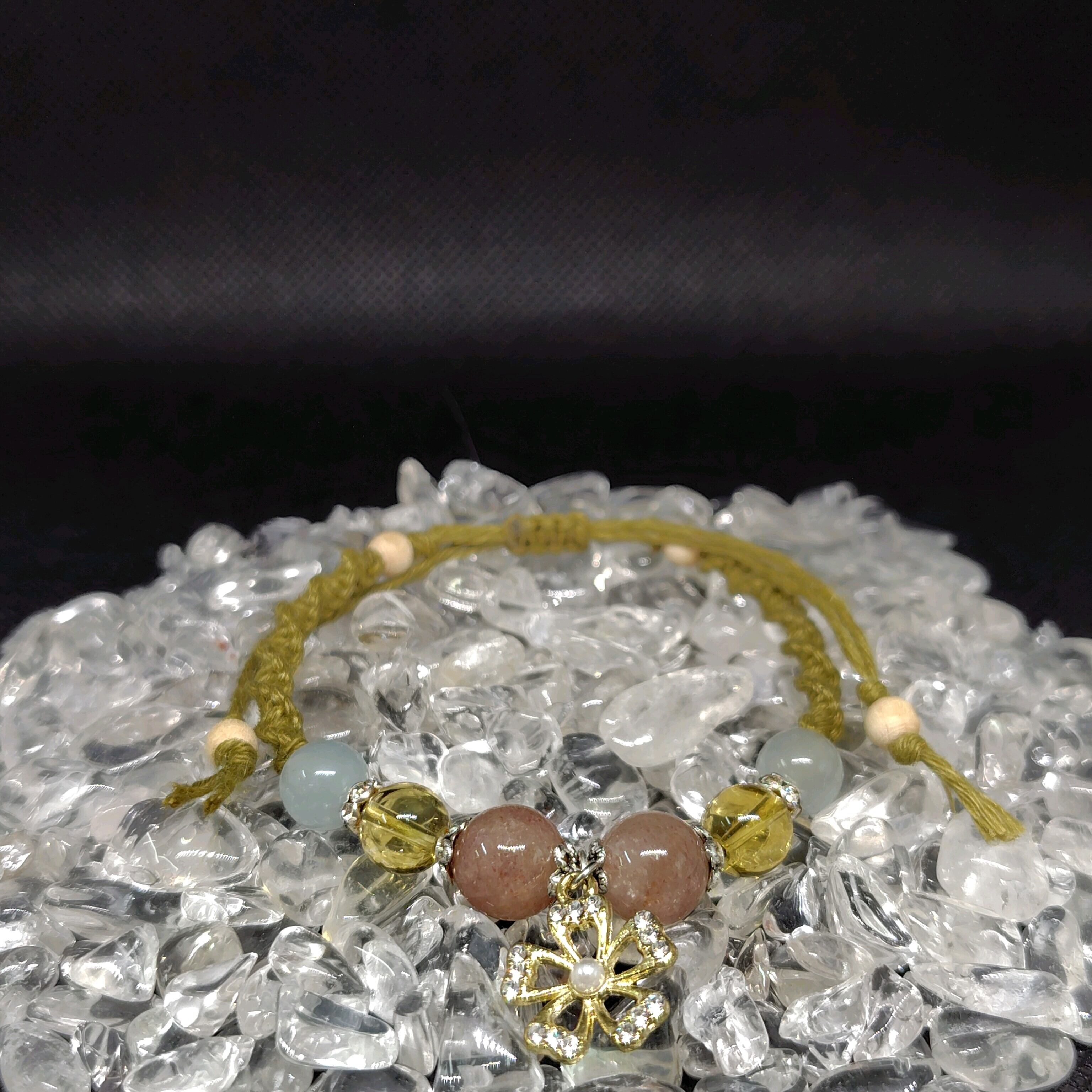 ・素材:ストロベリークォーツ、シトリン、翡翠、ヘンプコード